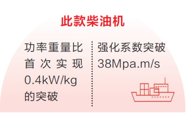據(jù)介紹,此款柴油機單機功率可達4400kW,排放指標滿足B15097-2016C2排放標準要求?!霸摍C突破了高功率密度柴油機強化設(shè)計、多增壓器相繼增壓優(yōu)化匹配及控制、大推力止推軸承強化設(shè)計等多項關(guān)鍵技術(shù),在國內(nèi)自主品牌高速大功率柴油機研發(fā)歷程中再一次刷新了紀錄,柴油機功率重量比首次實現(xiàn)0.4kW/kg的突破,強化系數(shù)突破38Mpa.m/s,國內(nèi)領(lǐng)先,國際先進。”河柴重工有關(guān)負責(zé)人說。