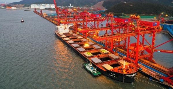 近日,寧波舟山港穿山港區(qū)中宅礦石碼頭二期項(xiàng)目,迎來了裝載著17.8萬噸澳大利亞鐵礦砂的“宏梅”輪,這是寧波市最大也是唯一一座30萬噸級(jí)礦石碼頭正式投產(chǎn)迎來的第一艘船舶。