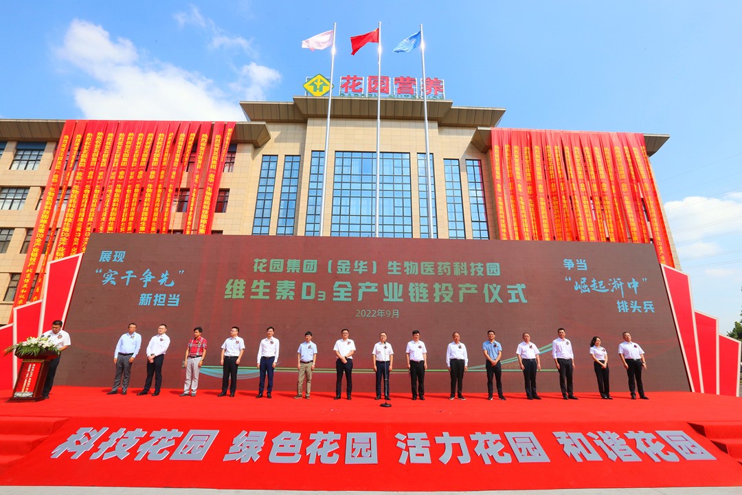 9月21日上午,花園集團(tuán)(金華)生物醫(yī)藥科技園維生素D3全產(chǎn)業(yè)鏈投產(chǎn)儀式,在金華開(kāi)發(fā)區(qū)金西健康生物產(chǎn)業(yè)園舉行。副市長(zhǎng)李斌峰出席并宣布投產(chǎn)。