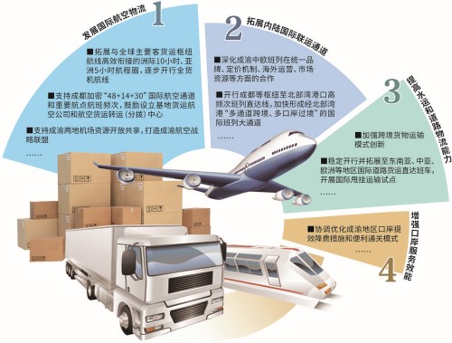 發(fā)展國際航空物流。優(yōu)化國際航線網(wǎng)絡(luò),拓展與全球主要客貨運(yùn)樞紐航線高效銜接的洲際10小時(shí)、亞洲5小時(shí)航程圈,逐步開行全貨機(jī)航線。支持成都加密“48+14+30”國際航空通道和重要航點(diǎn)航班頻次,落實(shí)航空貨運(yùn)樞紐建設(shè)扶持政策,鼓勵(lì)設(shè)立基地貨運(yùn)航空公司和航空貨運(yùn)轉(zhuǎn)運(yùn)(分撥)中心。支持成渝兩地機(jī)場資源開放共享,統(tǒng)籌運(yùn)力、整合航線,提升國際航空中轉(zhuǎn)能力,共營卡車航班,互為異地貨站,打造成渝航空戰(zhàn)略聯(lián)盟。