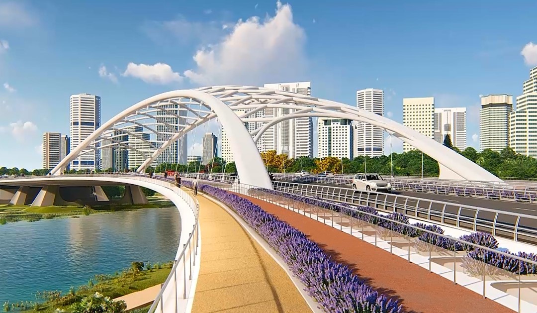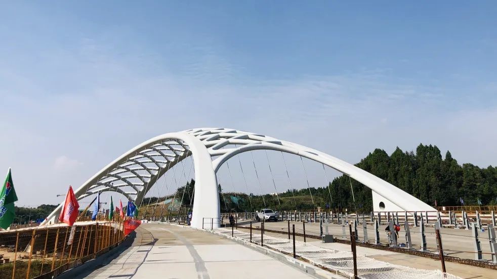 東一線跨絳溪河大橋橋梁全長(zhǎng)292米,主跨152米,橋梁寬度50.2米,是國(guó)內(nèi)第一座異形純鋼管網(wǎng)殼拱結(jié)構(gòu)的彎線城市景觀大橋,也是連接成都未來(lái)科技城應(yīng)用性科學(xué)中心和智造示范區(qū)兩大片區(qū)的關(guān)鍵交通樞紐。通車(chē)后,將更好地支撐成都未來(lái)科技城“對(duì)內(nèi)循環(huán)、對(duì)外暢通”的交通體系。