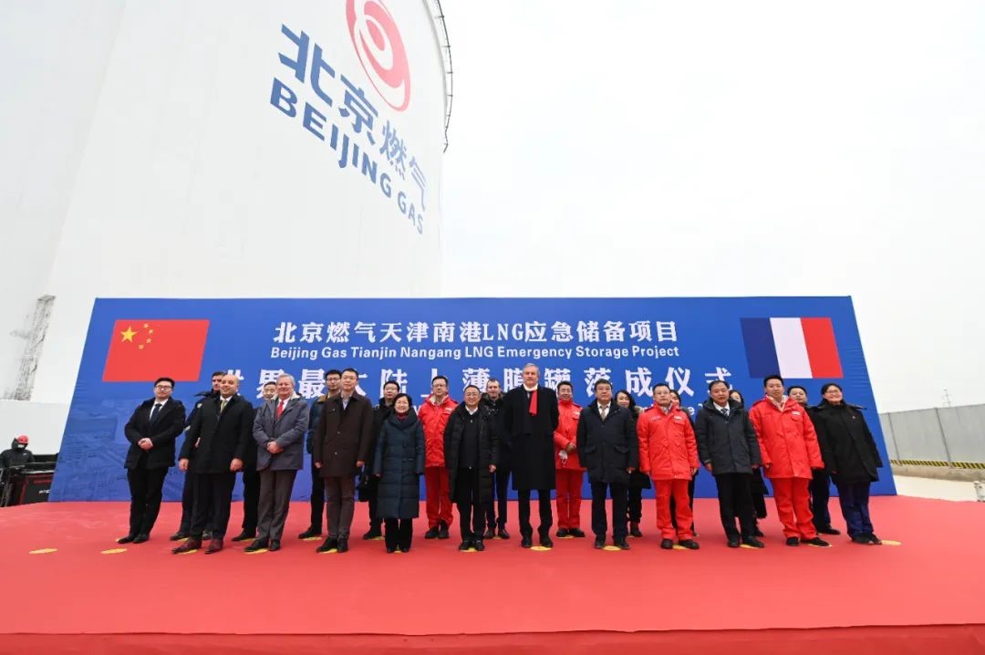 近日,國家石油天然氣基礎設施重點工程——北京燃氣天津南港液化天然氣應急儲備項目(以下簡稱北燃南港LNG項目)一期工程兩座薄膜罐順利完工。兩座薄膜罐單座罐容可達22萬立方米,是世界上最大的陸上LNG薄膜罐。