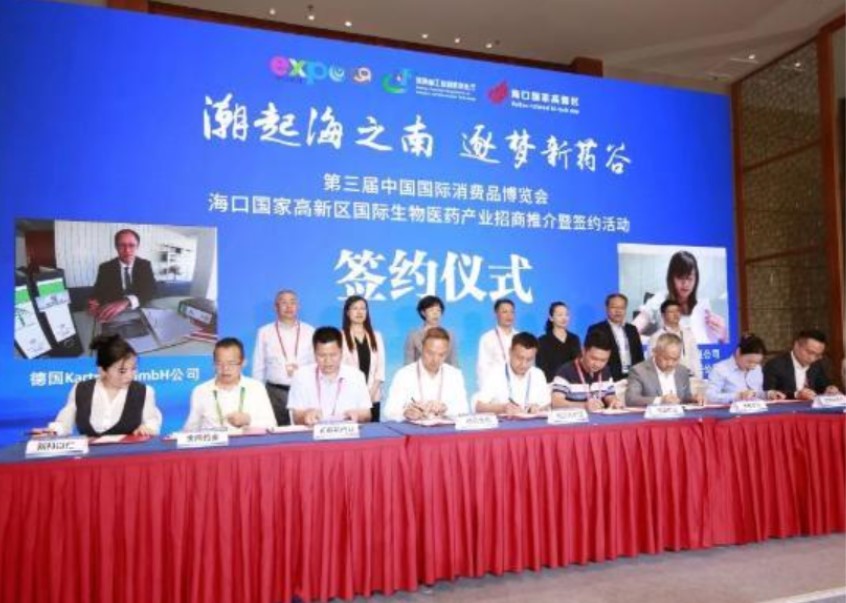 4月13日下午,??趪?guó)家高新區(qū)國(guó)際生物醫(yī)藥產(chǎn)業(yè)招商推介暨簽約活動(dòng)在第三屆中國(guó)國(guó)際消費(fèi)品博覽會(huì)現(xiàn)場(chǎng)舉行,當(dāng)天共簽約11個(gè)項(xiàng)目,總投資額15億元,均為生物醫(yī)藥產(chǎn)業(yè)項(xiàng)目。