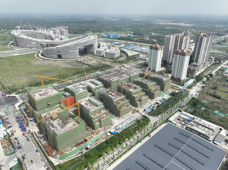5月24日,在高郫電子信息產(chǎn)業(yè)園內(nèi),園區(qū)科創(chuàng)中心項(xiàng)目正式全面封頂,該項(xiàng)目于2022年9月20日正式啟動(dòng)建設(shè),預(yù)計(jì)將于2024年6月呈現(xiàn)。
