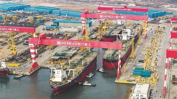 2026年1月4日,由恒力重工1號(hào)船塢建造的4艘超大型油輪(VLCC)同一天出塢下水,4艘VLCC同塢建造、同日出塢,創(chuàng)造了全球造船行業(yè)新紀(jì)錄,標(biāo)志著恒力重工節(jié)拍化、規(guī)模化造船能力已達(dá)到世界領(lǐng)先水平。